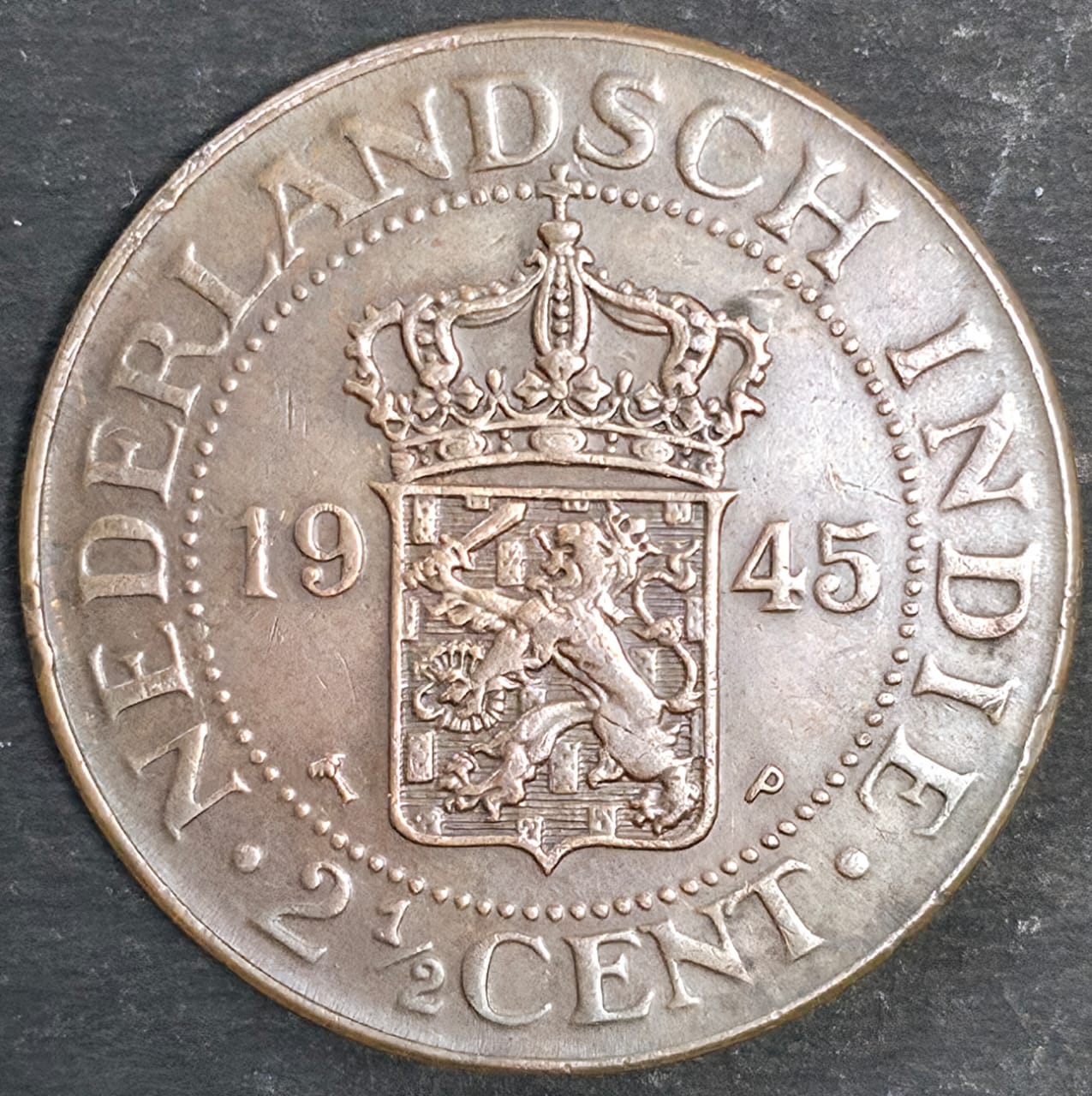 1945 Netherlands East Indies 2½ Cents – Queen Wilhelmina – Bronze Coin – $5