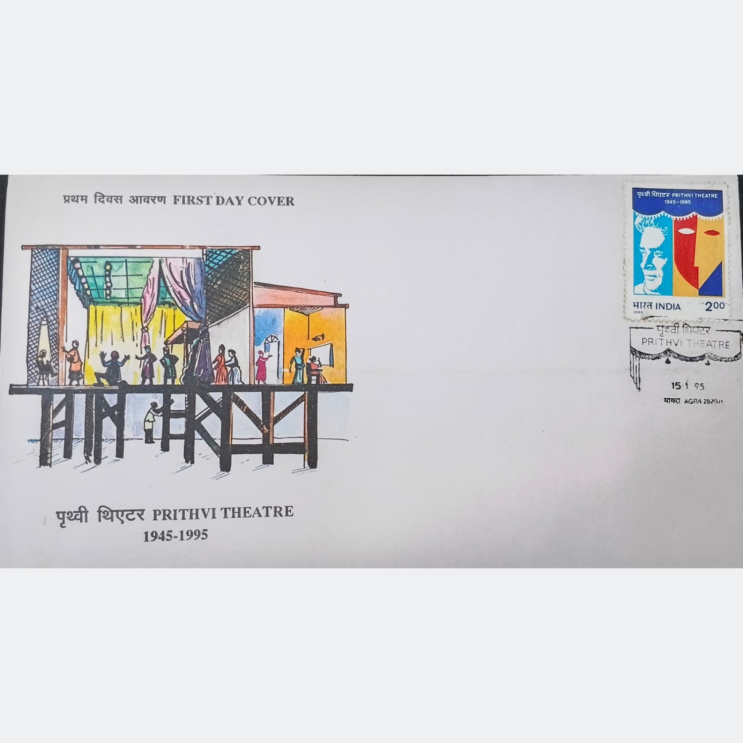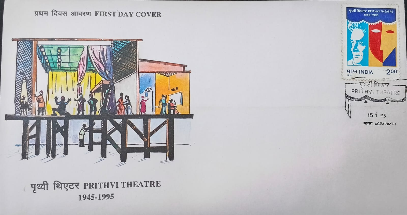 Celebrate 50 years of Indian theatre history with this 20 x 11 cm commemorative item honoring Prithvi Theatre (1945–1995) — a cultural landmark in the Juhu neighborhood of Mumbai.