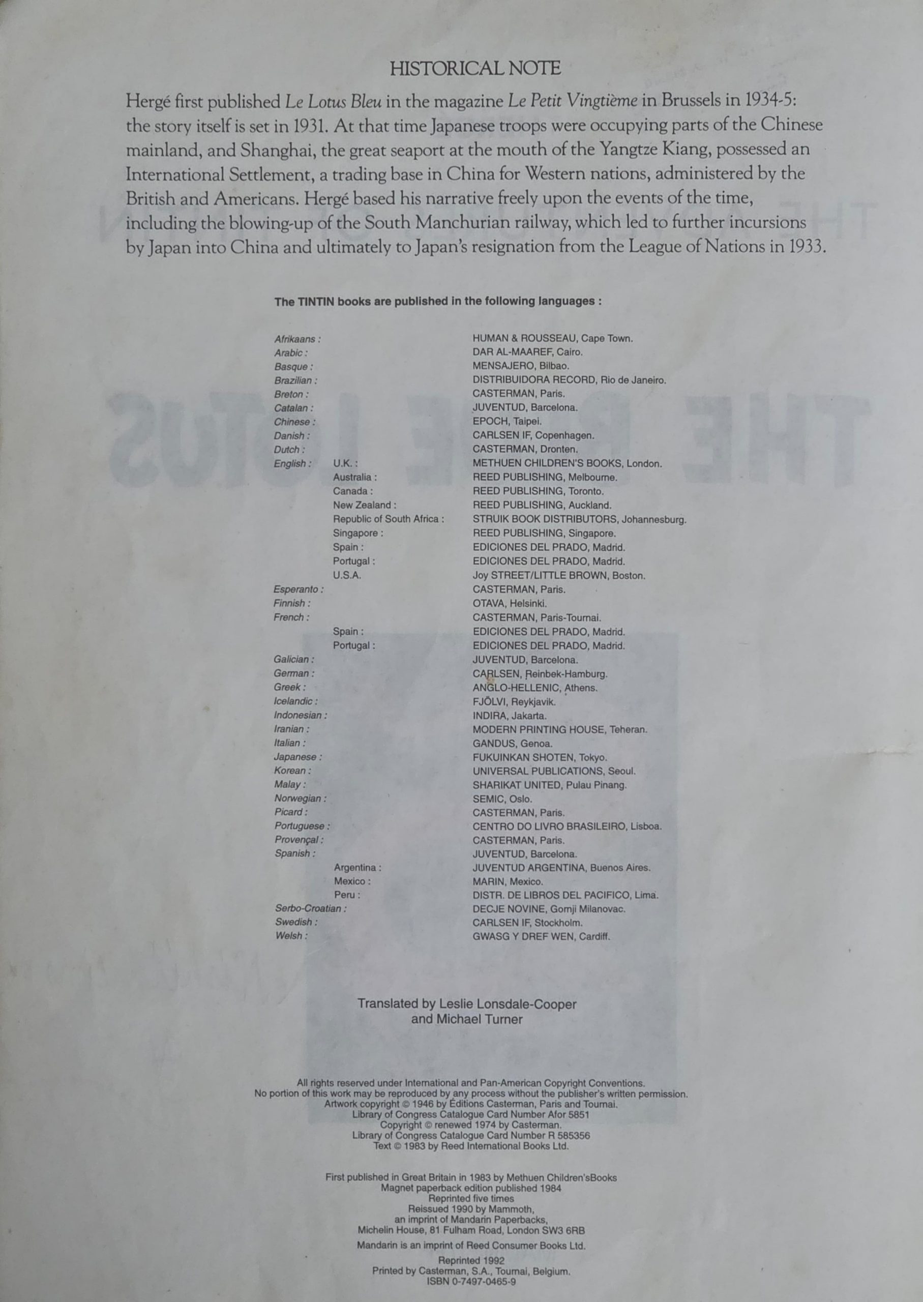 The Adventures of Tintin – The Blue Lotus (Mammoth Edition) – $13