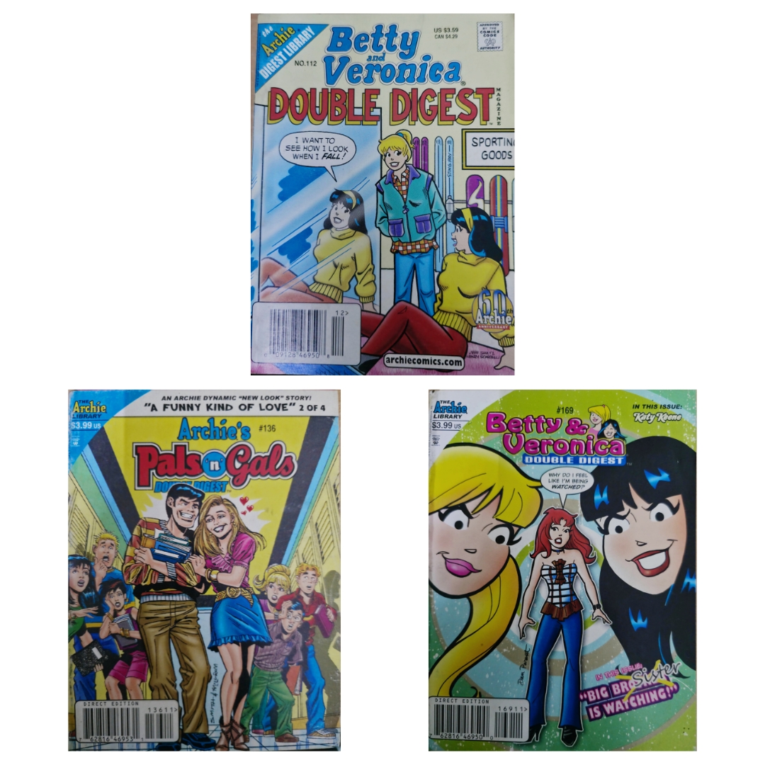 A delightful set of 3 vintage Archie Library editions, featuring Archie, Betty, Veronica, Jughead, and the gang in their classic comic escapades. These digest-sized editions capture the humor, charm, and teen adventures that have entertained generations of readers.